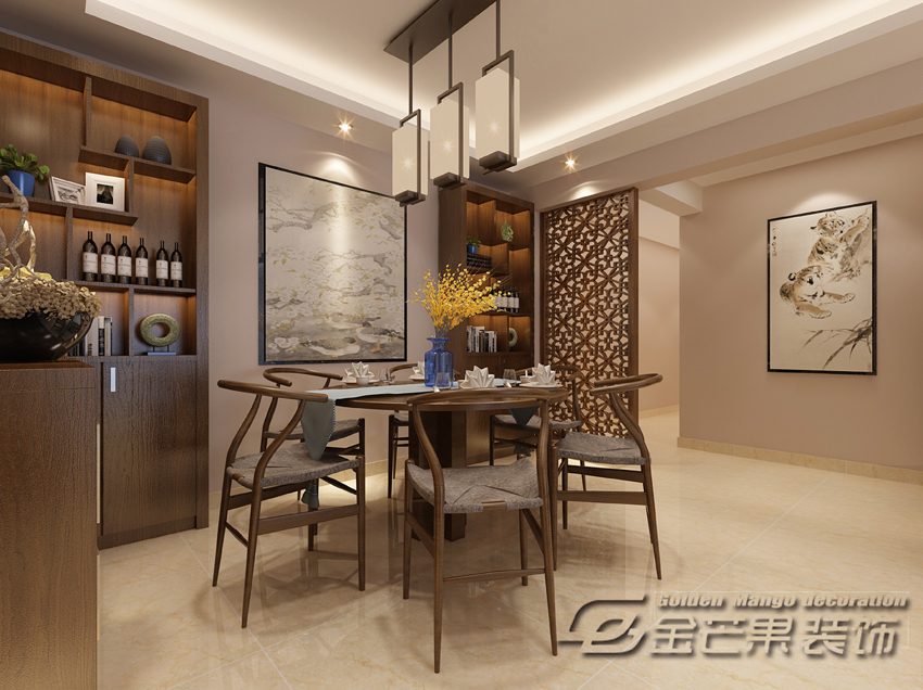 人民壹號廣場120㎡ 簡中風(fēng)格 餐廳效果圖 金芒果裝飾設(shè)計師:李應(yīng)剛 出品