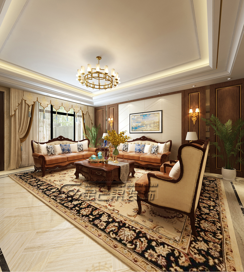 滇池ONE 460㎡ 美式風(fēng)格 客廳效果圖 金芒果裝飾設(shè)計(jì)師:林杰 出品