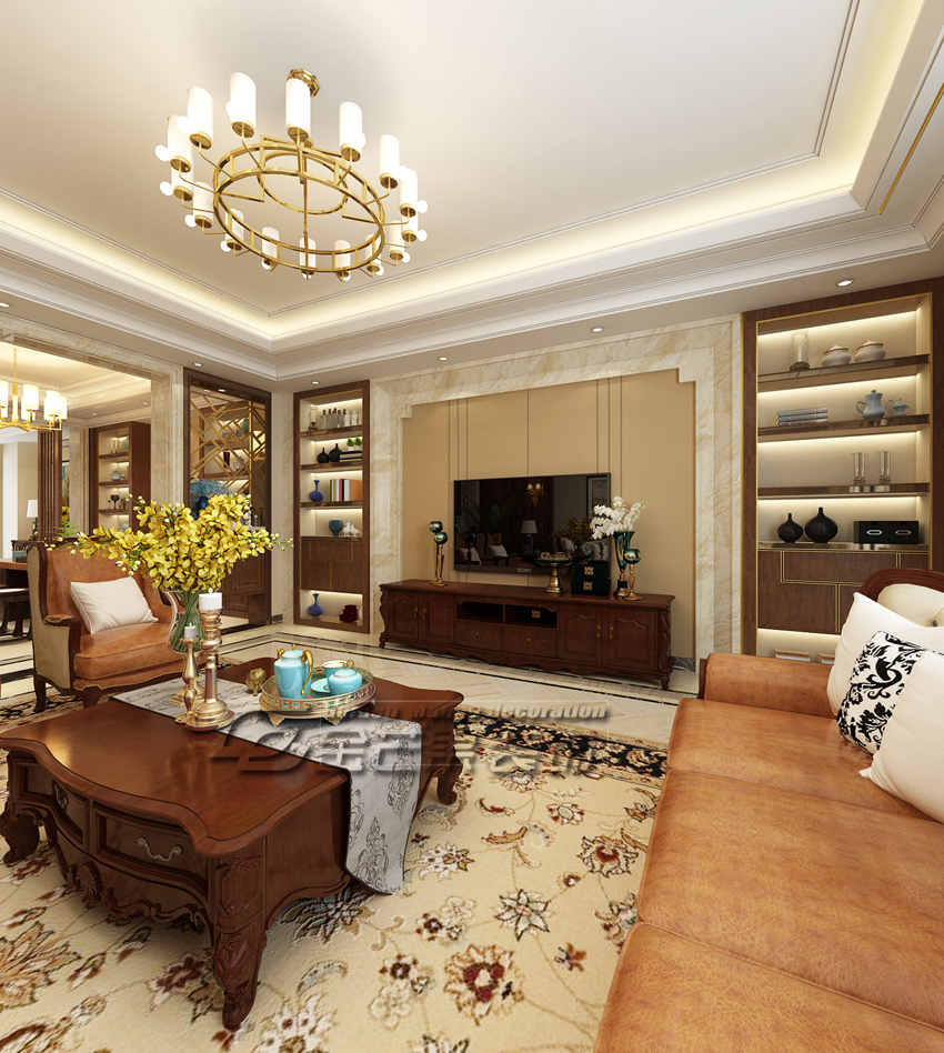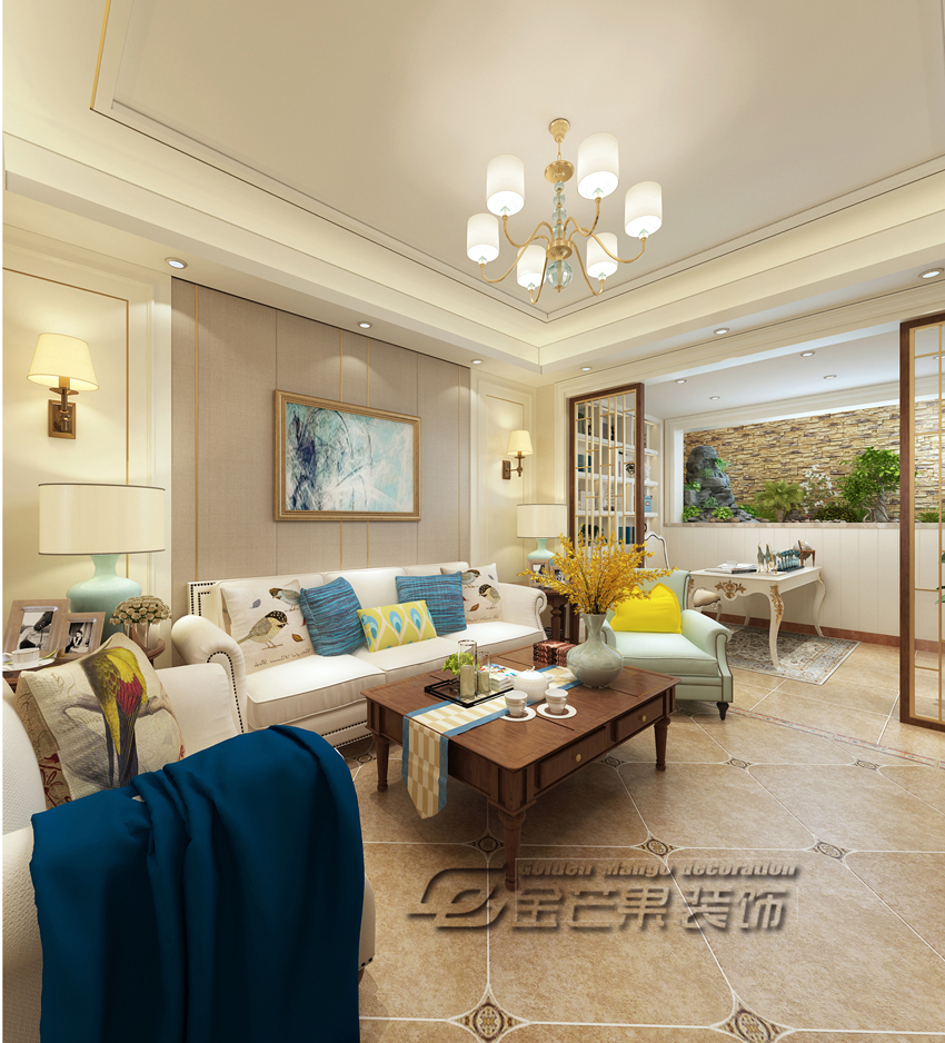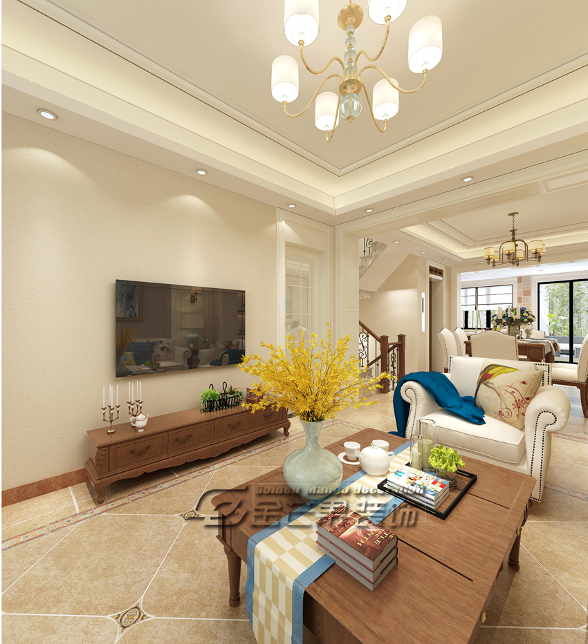滇池ONE 460㎡ 美式風(fēng)格 會(huì)客廳效果圖 金芒果裝飾設(shè)計(jì)師:林杰 出品