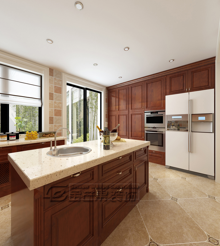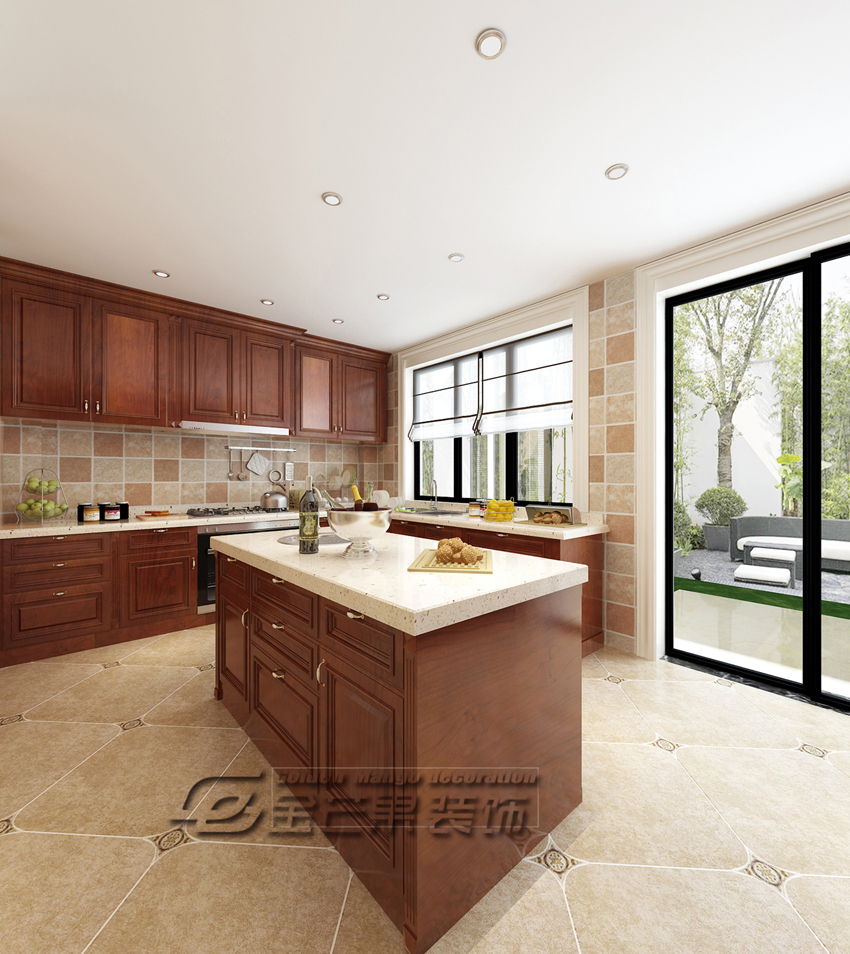 滇池ONE 460㎡ 美式風(fēng)格 廚房效果圖 金芒果裝飾設(shè)計(jì)師:林杰 出品
