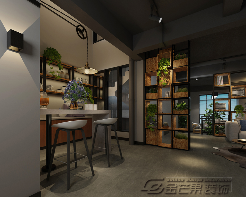 思蘭雅苑350㎡ 工業風格 吧臺效果圖 金芒果裝飾設計師:李應剛 出品