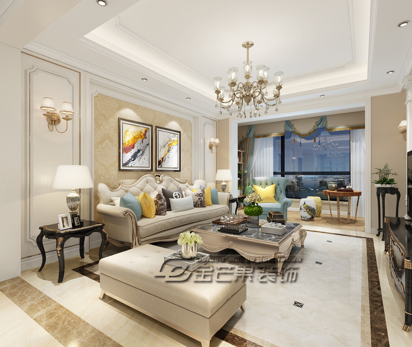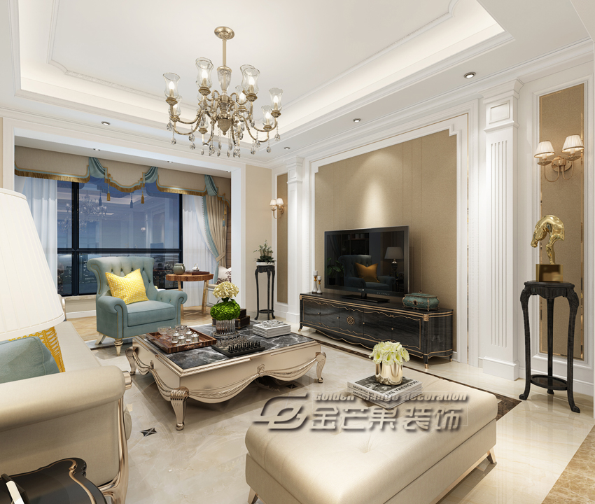 華夏御府174㎡    簡歐風格   客廳效果圖  金芒果裝飾設計師:林杰    出品