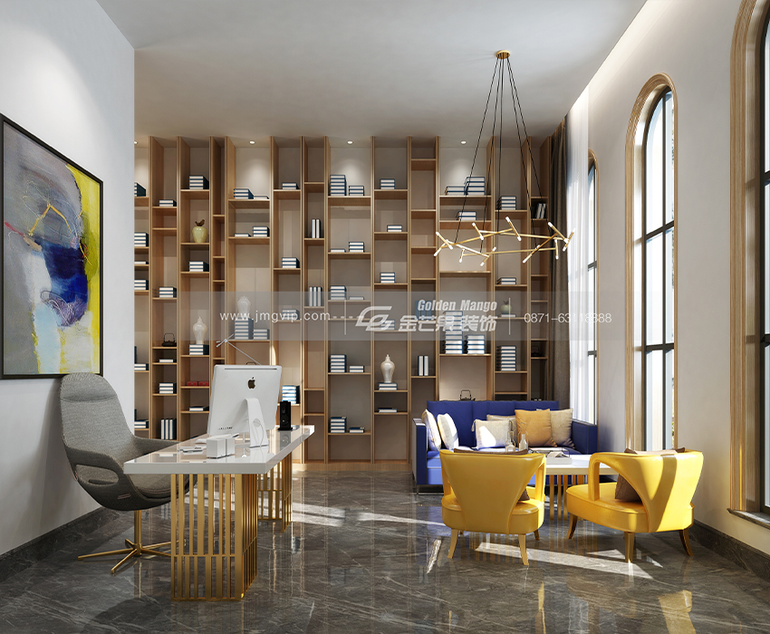 混搭風格 書房效果圖 金芒果裝飾設計師:徐國兵