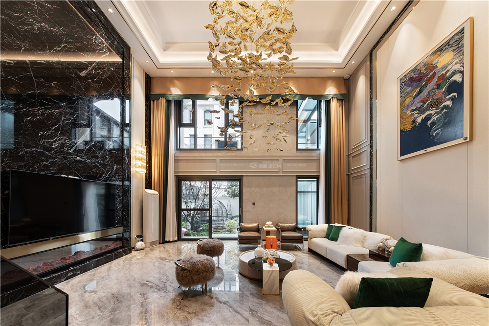 滇池one 500㎡  輕奢風格  客廳實景圖  幸福金芒果裝飾:出品