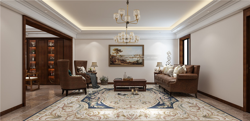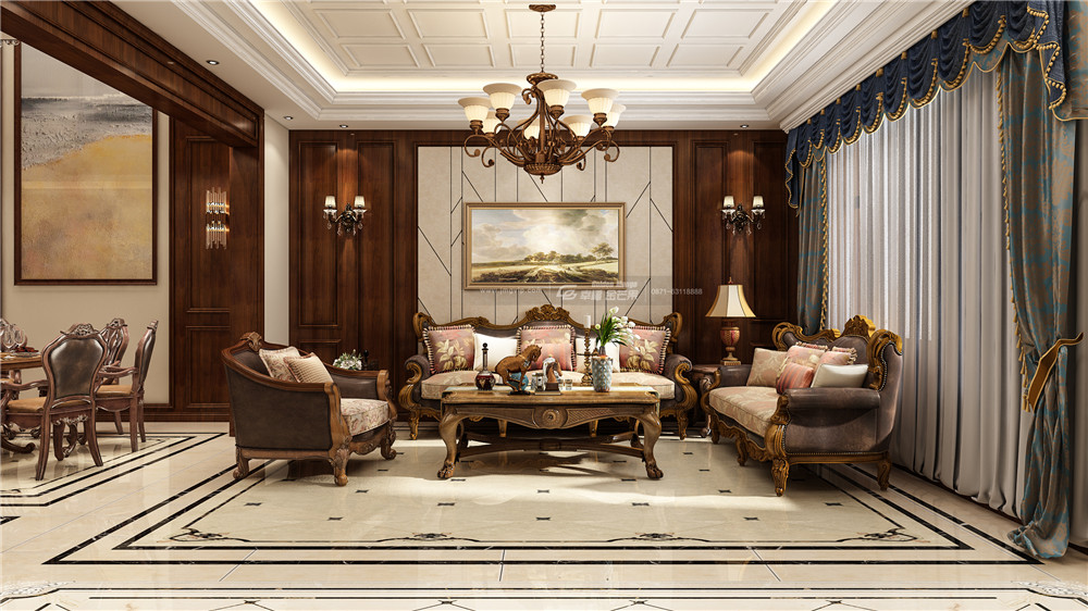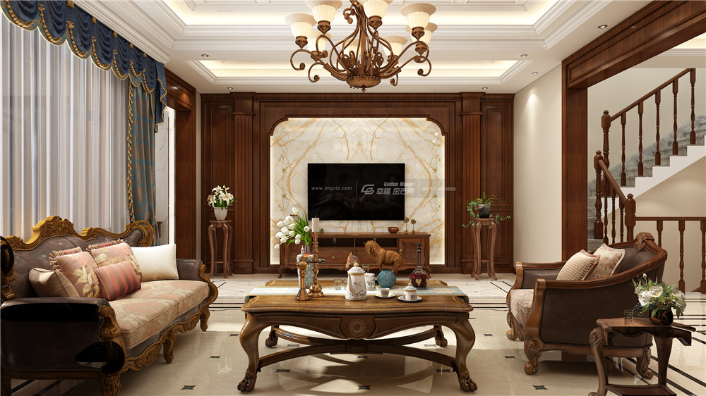 云璽大宅 550㎡  美式風格  玄關客廳效果圖  幸福金芒果裝飾: 張正川 出品