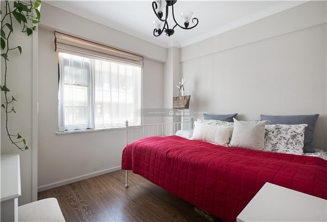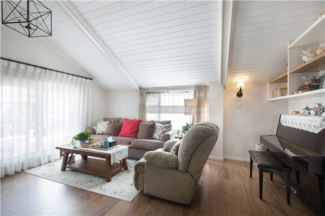 簡潔明亮的配色清爽明快,深色木地板突出質樸、優雅的感覺。美式的燈具增加濃厚的美式氛圍。
