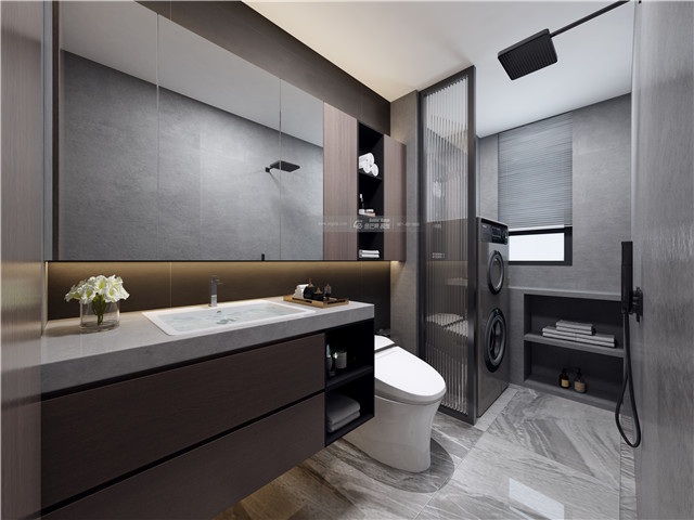 精致感在每一處得以顯現(xiàn),輕灰的時尚迎合衛(wèi)生間簡潔、干凈的特性,傳達精致的生活態(tài)度。