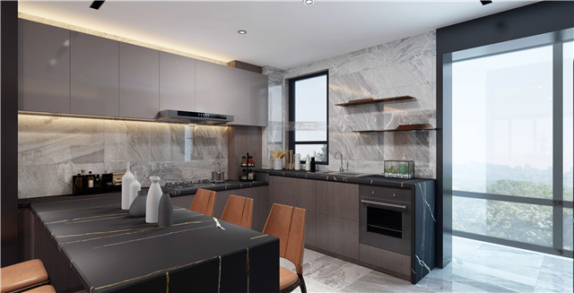 大理石上的金色花紋,華貴輕奢,演繹典雅的空間語言。
