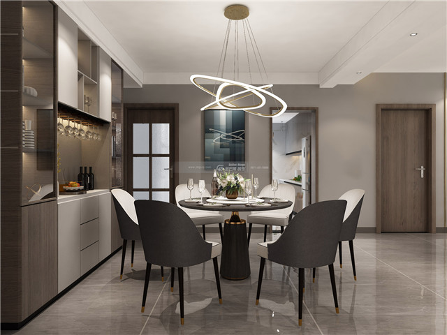 經典的灰色營造高級的輕奢感,精致的餐桌椅,精致的餐具,時尚感的燈具,優雅的餐邊柜,一切都在打造一種有格調卻不張揚的生活方式。