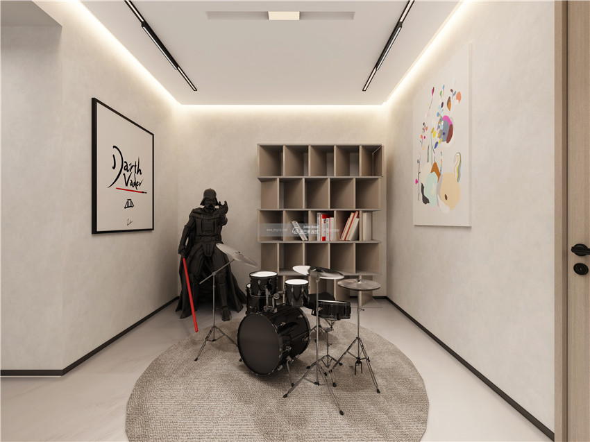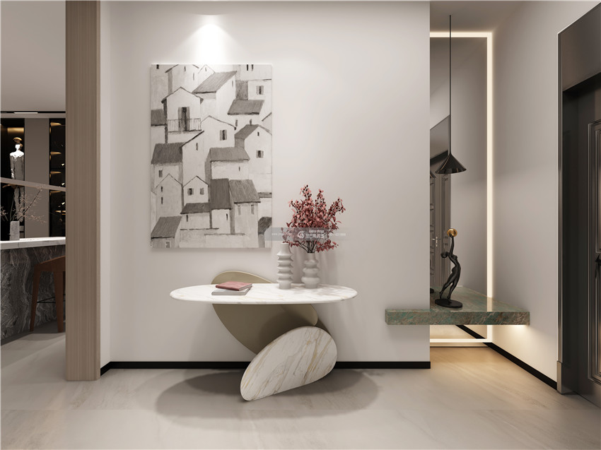 異形燈和裝飾畫的呼應關系,在虛實之間形成個性的互動,呈現一種精妙的空間藝術。
