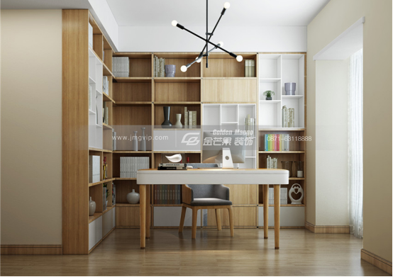 整體顏色主要采用原木色為主,柜子是定制的,以多個(gè)格子隔開,分類上更加清晰明了,書房最大的亮點(diǎn)是落地窗,不僅提高整個(gè)空間的顏值,也提供了更好的采光性