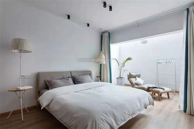 晚間的入眠,大大的床,單把的躺椅,簡單的燈架,簡單的綠植,柔和的色彩,成了進入夢鄉最放松的地方。