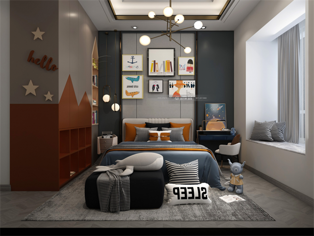 臥室設(shè)計新穎獨特,給寶寶大膽的想象空間,溫馨而舒適。