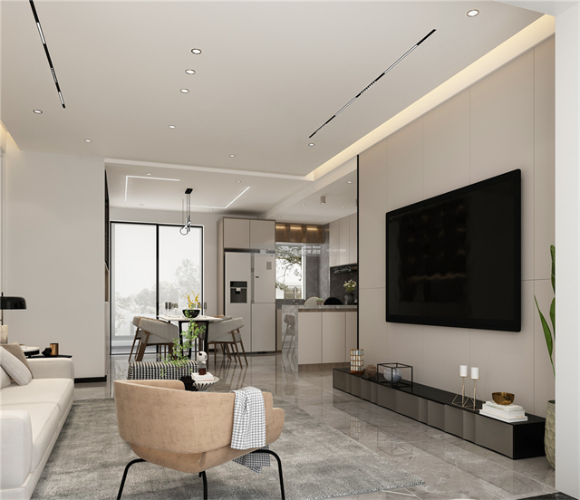 客廳選擇了白色的沙發(fā)和爵士白石材的茶幾搭配裝飾,灰色的瓷磚搭配地毯更顯優(yōu)雅和大氣,輕奢感滿滿,給人一種濃濃的現(xiàn)代風(fēng)氣息。