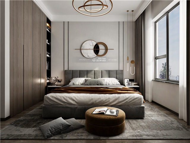 溫暖優(yōu)雅的顏色,營(yíng)造溫馨舒適的臥室氛圍,床頭融入裝飾,增加時(shí)尚感。