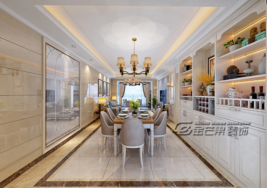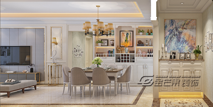 餐廳、客廳、陽臺在空間的使用率有很大的提升,舒適的椅子更能舒心享用美食。柜子也能珍藏更多美酒。