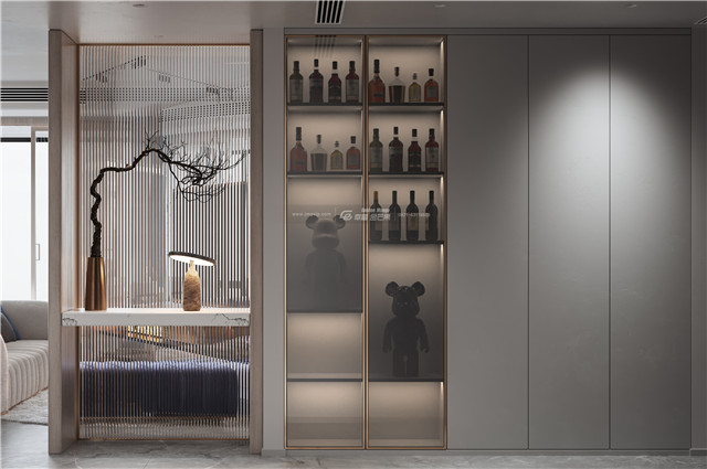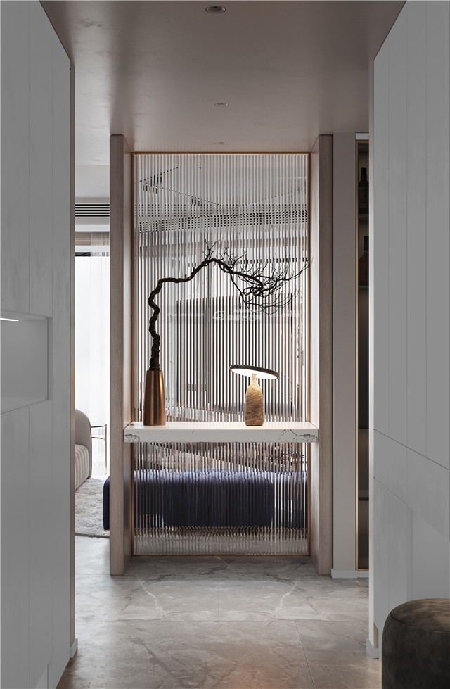 松際露微月,茅亭宿花影。清風疏影,入戶既展現空間的清逸和非凡氣度,不免有讓人想要更進一步一探究竟的意愿。長虹玻璃打造隔而不斷的效果,若隱若現間,空間格調感倍增。