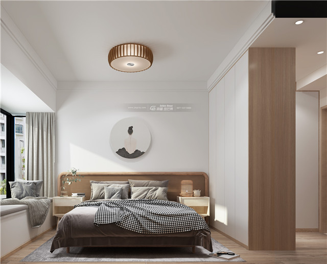 木材的床床頭隱約顯現(xiàn)木頭的紋路,現(xiàn)代氣息的床頭柜,太陽灑落明媚光線,攬清風(fēng)明月入懷,臥室變得有格調(diào)起來。