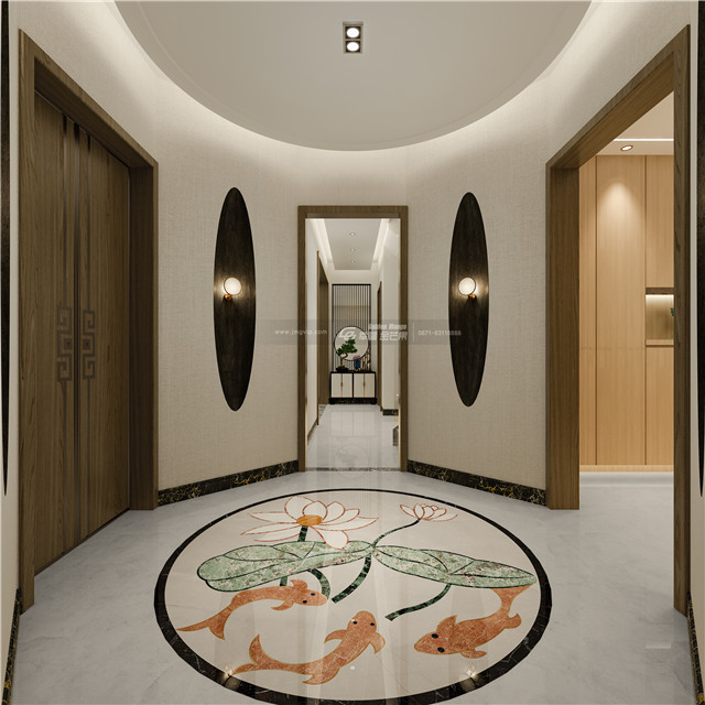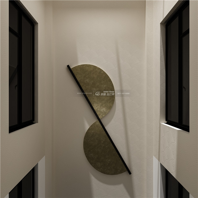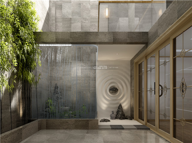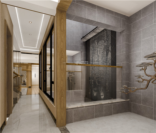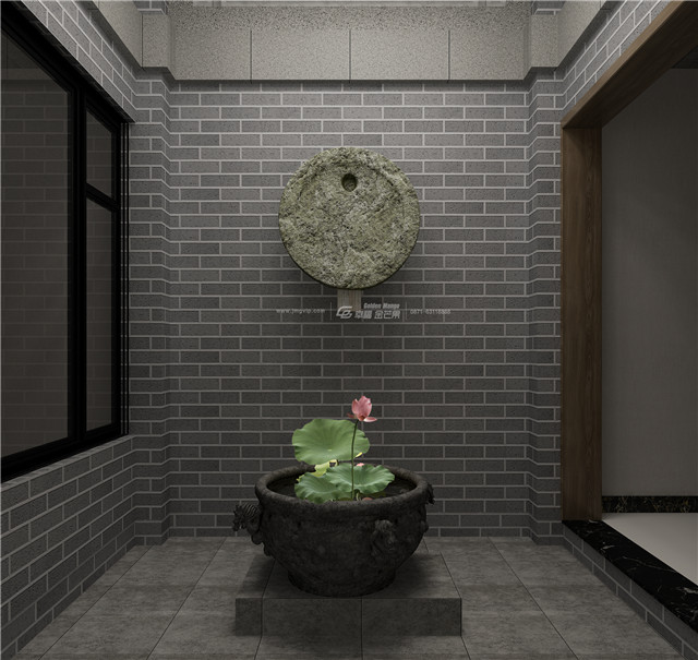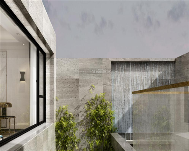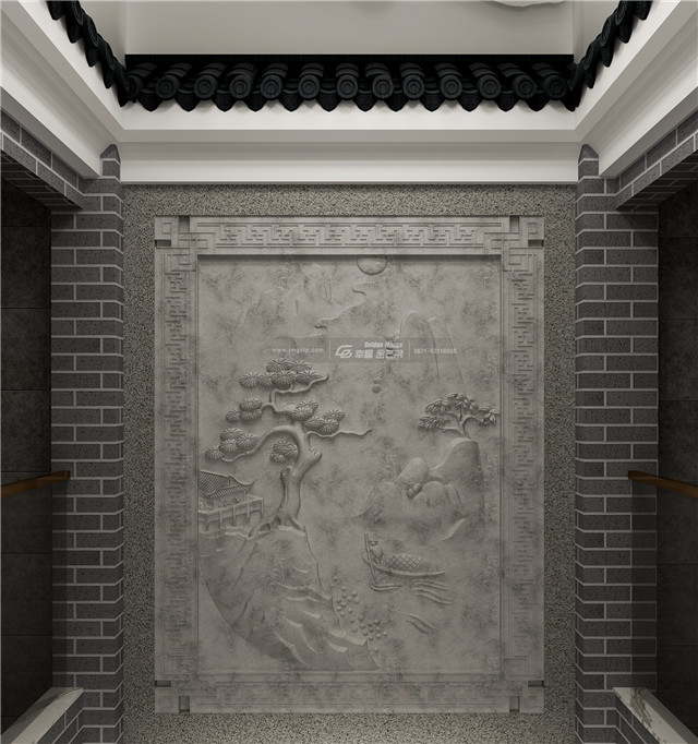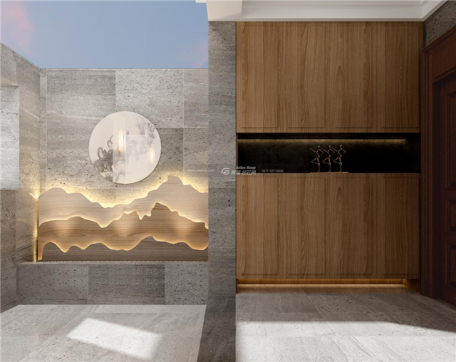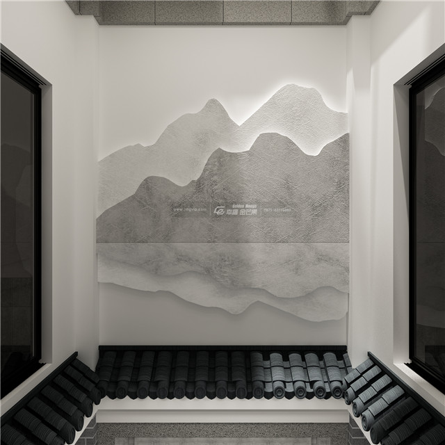 “壁間水墨畫(huà),為爾拂塵埃。”水墨畫(huà)仿佛和大理石墻面融為一體,揮毫幾筆,東方禪意全出。