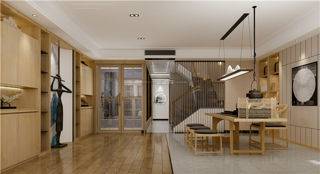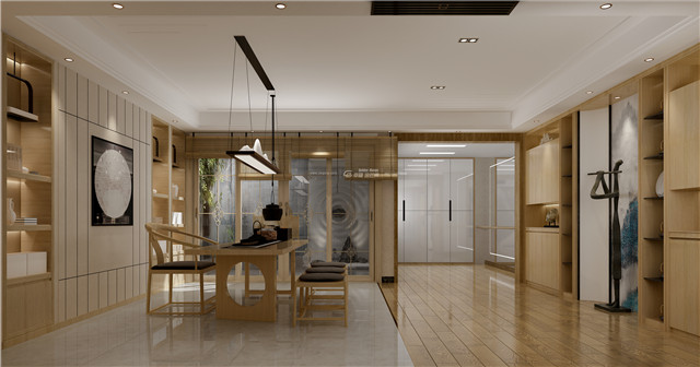 東方的木幾、瓷器、水墨畫(huà)和自然光線,在“虛與實(shí)”、“顯與隱”間相互作用,形成具有東方禪意的視覺(jué)張力。