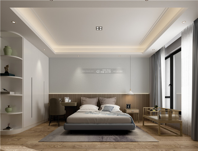 臥室充滿俊雅的味道,與空間整體用色保持一致。在配飾的選擇方面更為簡(jiǎn)潔。整體柔和、沉穩(wěn)和安靜,呈現(xiàn)出寧?kù)o雅致的氛圍。同時(shí)輔之細(xì)膩的色彩處理與周到的材質(zhì)轉(zhuǎn)換。
