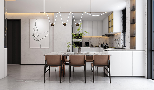 餐廳與廚房進(jìn)行融合,利用開放格局之形,去強(qiáng)調(diào)居住者是空間中絕對的主角,為他們的生活注入更豐沛的情感。