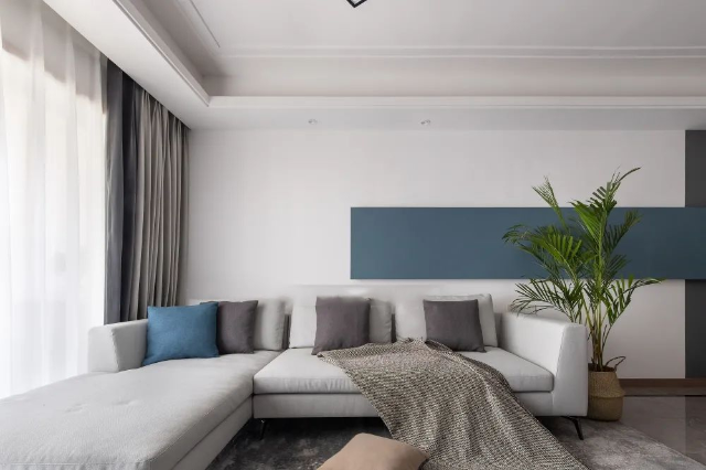 客廳整體空間為淺色系,線條簡(jiǎn)潔硬朗,簡(jiǎn)約白的背景色,奠定了空間低調(diào)的質(zhì)感、優(yōu)雅的基調(diào)。設(shè)計(jì)師巧妙運(yùn)用質(zhì)感的石材以及自然元素賦予空間生動(dòng)輕靈的魅力。