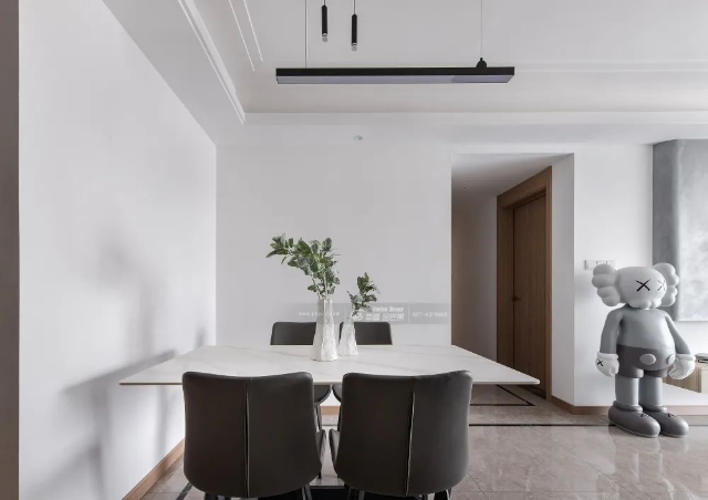 簡(jiǎn)潔大氣的白色基調(diào),搭配清新的綠植,加上頗有藝術(shù)感的卡通雕塑的襯托,整個(gè)空間簡(jiǎn)單有序,層次自然。
