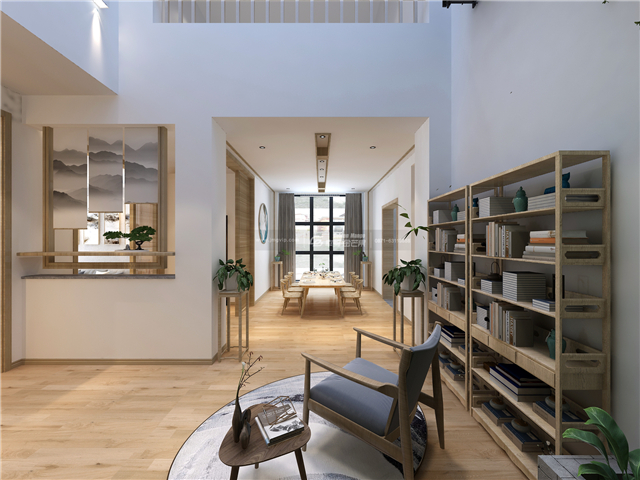 原木的書架,書香氣和木香氣混合,幾株綠植,更添許多清涼的意味。微風陣陣,在搖椅上瞇著眼輕輕搖晃,陽光輕撫,感受自然的愜意舒適感。