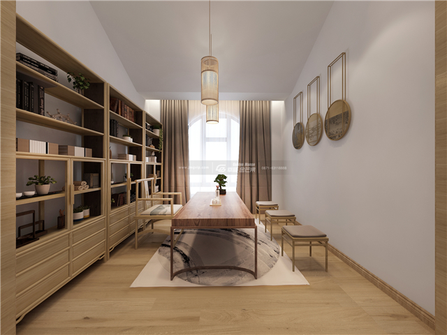 結廬在人境,而無車馬喧。燈具的選擇和博古架、書桌的搭配恰到好處,放下汲汲營營,無謂是非,只行風雅。