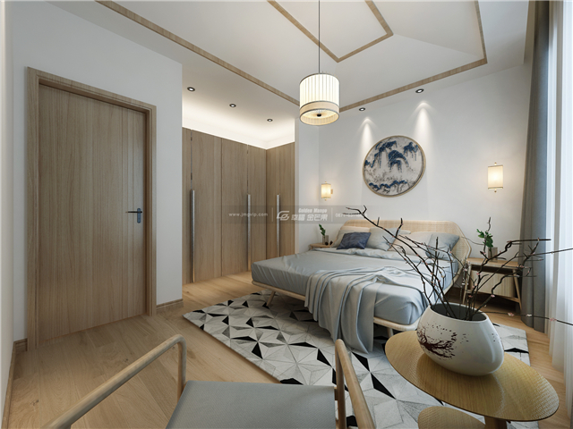 沒有過多的裝飾,木材本身的紋理醞釀出自然清閑的家居氛圍。質樸的原木色,純凈的白色反射自然光線,將家居營造的明亮自然。日式燈飾,障子門,將日式和風自然幽靜的平淡適然感很好地傳遞。