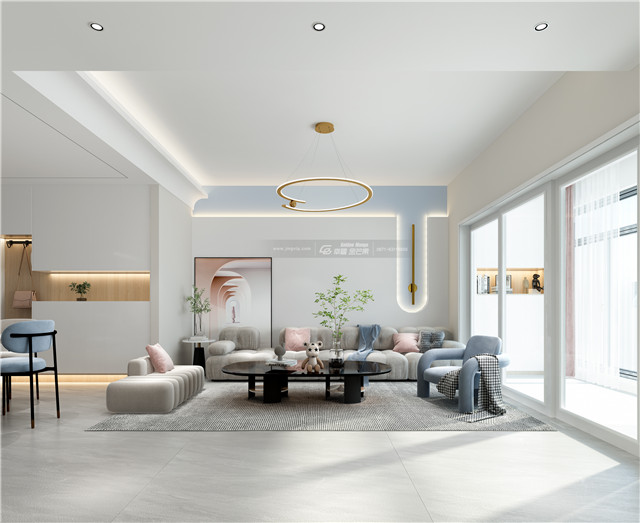 向天空借一點顏色,把它涂在墻上,把屬于大自然的空靈與清新,帶回家中。摒棄更多復雜的造型,用簡潔純粹的色彩醞釀純凈的家居氛圍。多用圓弧形家具造型,可愛溫柔,內心亦變得柔軟起來。