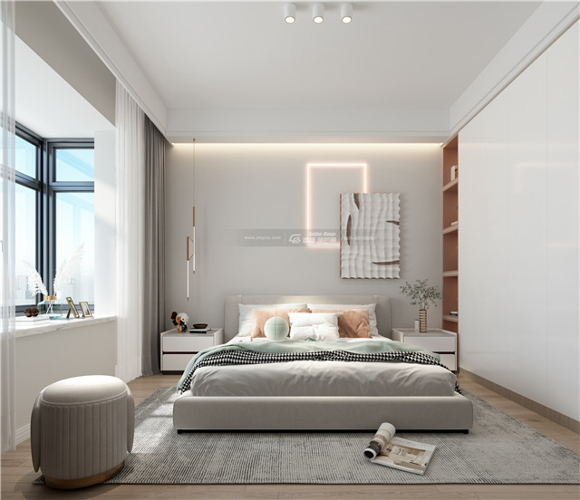 白天應對生活的各種瑣事,臥室就獨留一片沒有壓力的純凈空間吧。純粹的白填滿整個空間,是放任簡單的思緒,亦是對內心雜念的清洗,什么都不想,毫無壓力的入睡。