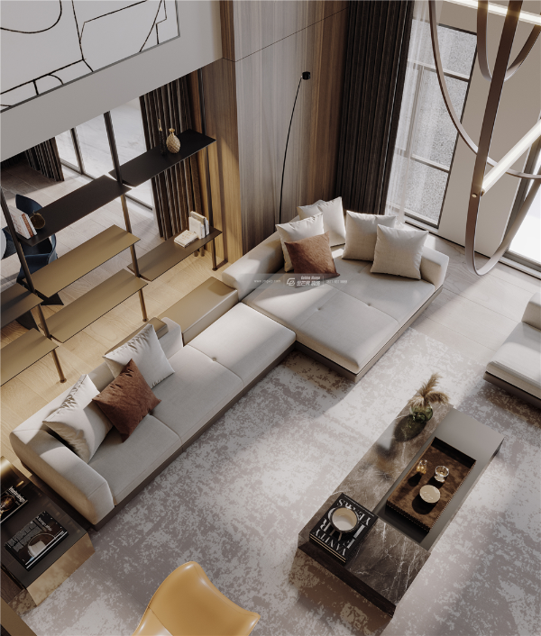 多種線型在客廳中完美組合,形成包容共生的和諧區(qū)域。