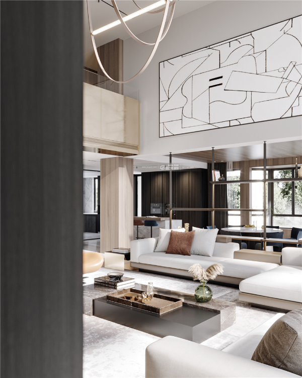 該項目是地處昆明滇池one 600m²的別墅,業(yè)主是一家對生活品質有很高要求。通過多次跟業(yè)主溝通探討,最終我們希望打造一個意式極簡的家居氛圍和空間格調。