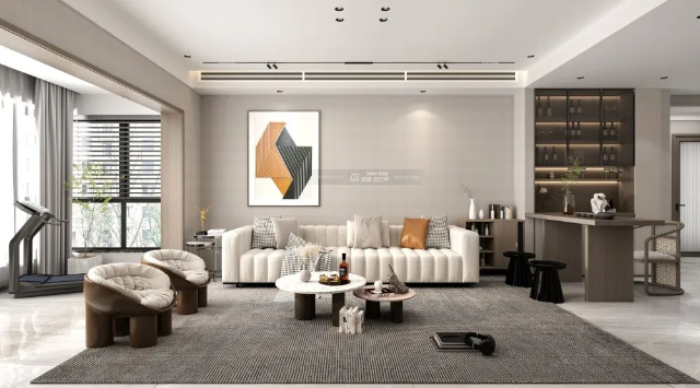 在起居空間中我們希望感受到四季如春的氣息。當(dāng)清晨蘇醒,窗外還有幾縷陽光透過窗戶照射進屋內(nèi),如此春意的設(shè)計手法把空間與自然刻畫得栩栩如生。