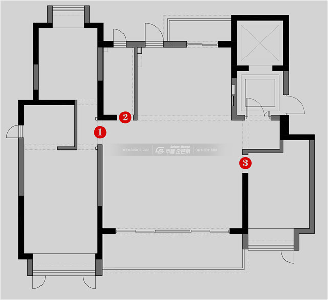 ④、1、2、3處做隱形門設計,客廳整體感、視覺效果更佳。