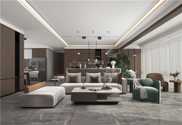 整體冷靜、安靜自在的氣質(zhì),井然有序的空間節(jié)奏,撫平煩躁的心緒,心思也變得有條理了起來。采用灰色地磚和大面積木飾面設計,空間變得沉靜而富有文藝高級的氣質(zhì)。簡約的線條設計,加上大理石的點綴,絲絨材質(zhì)的抱枕,整體空間奢華而沉靜內(nèi)斂。
