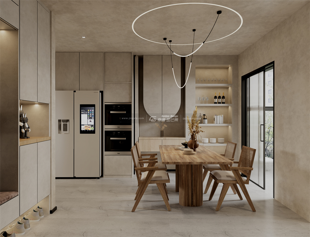 2、餐廚一體化設計,提高空間利用率,縮短餐廳與廚房的動線距離,帶來更佳的下廚體驗