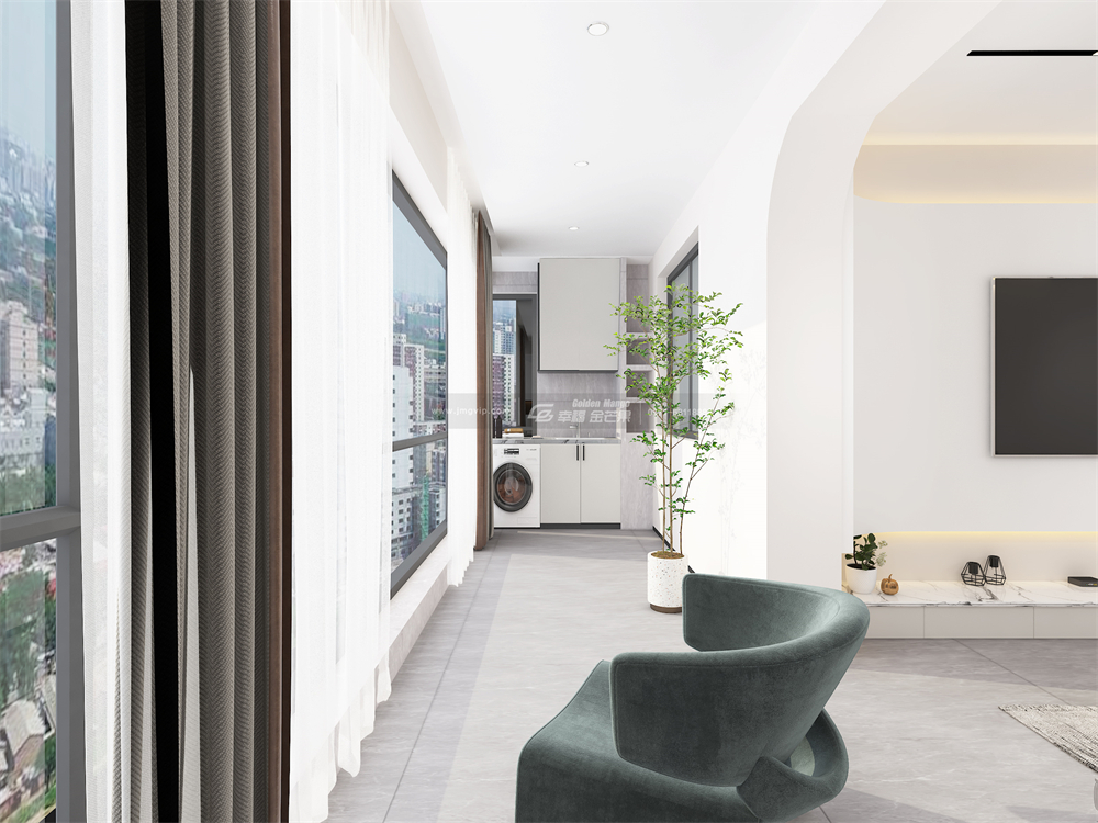 陽臺的豆沙綠貴妃椅成為吸睛之筆,不忙時愜意地躺在上面,閑看庭前花開花落,漫隨天外云卷云舒,享受天空帶來的每一份驚喜!
