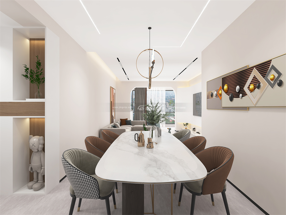 白色與棕色“珠聯璧合”為就餐空間定下唯美的基調,墻上的裝飾畫透露出與眾不同的氣質。一張餐桌、幾張餐椅、一頓美食,讓全家人團聚在一起,享受美味帶來的幸福感!