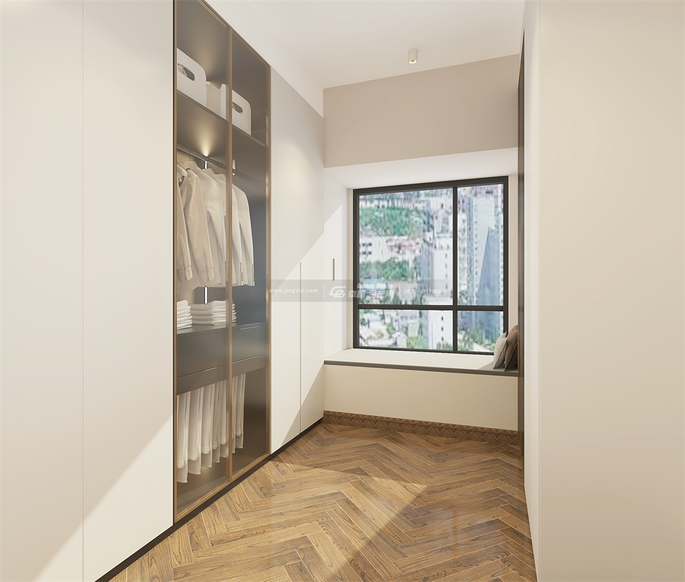 衣帽間精致高級,定制式通頂柜,打破傳統成品衣柜固定高矮局限,收納力百分百。透明玻璃柜懸掛區、疊放區讓衣物擺放井然有序,也讓每日搭配衣服得心應手。