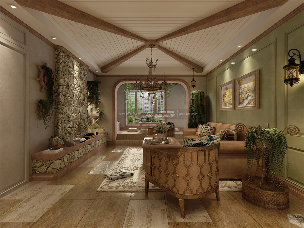 看膩了現代風格,那小編給大家換個口味如何?這種風格呢,它生機盎然,讓你仿佛闖入了森林世界里,那么的清新與自然,它還帶著幾分復古氣質,好像夢回電影里的美式建筑。大家猜到了嗎?沒錯!它就是田園美式風格!事不宜遲,那就一起來和幸福金芒果裝飾看看這油畫里的家吧!