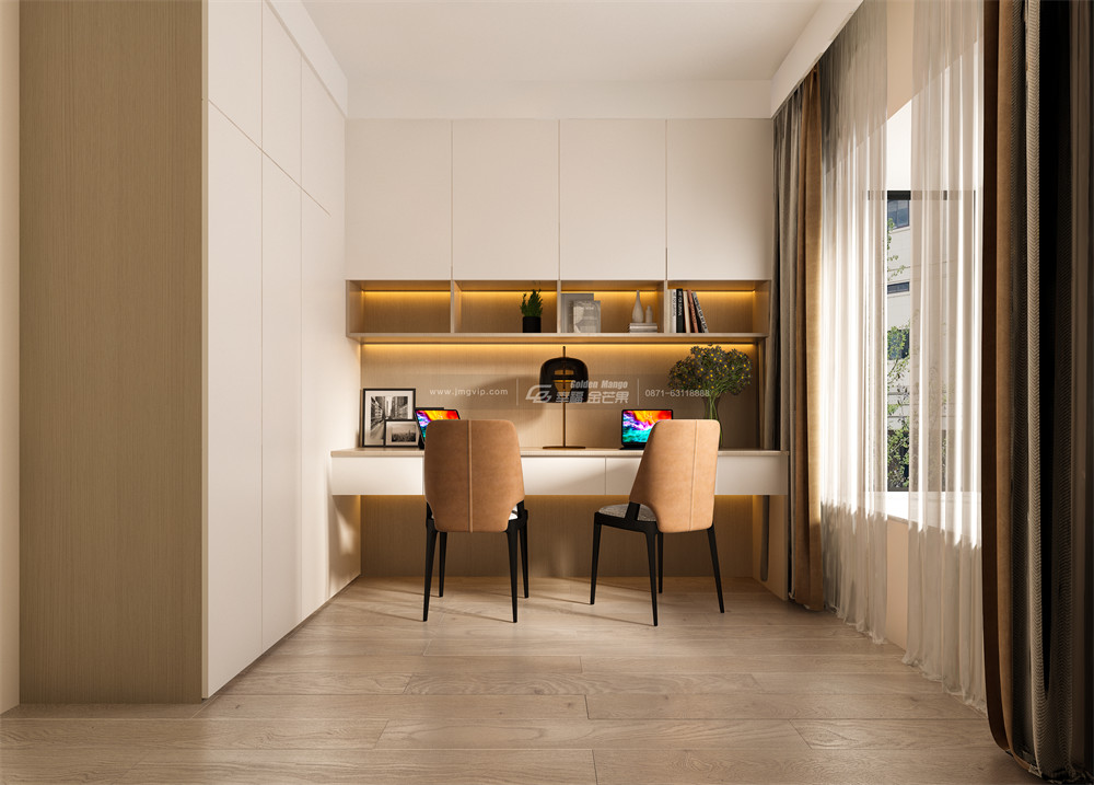 書房全屋整體以留白與原木色調組成,整個書房散發著濃濃的溫潤質感,充滿了自然與藝術氣息,舒適簡單,怎么看都很喜歡。