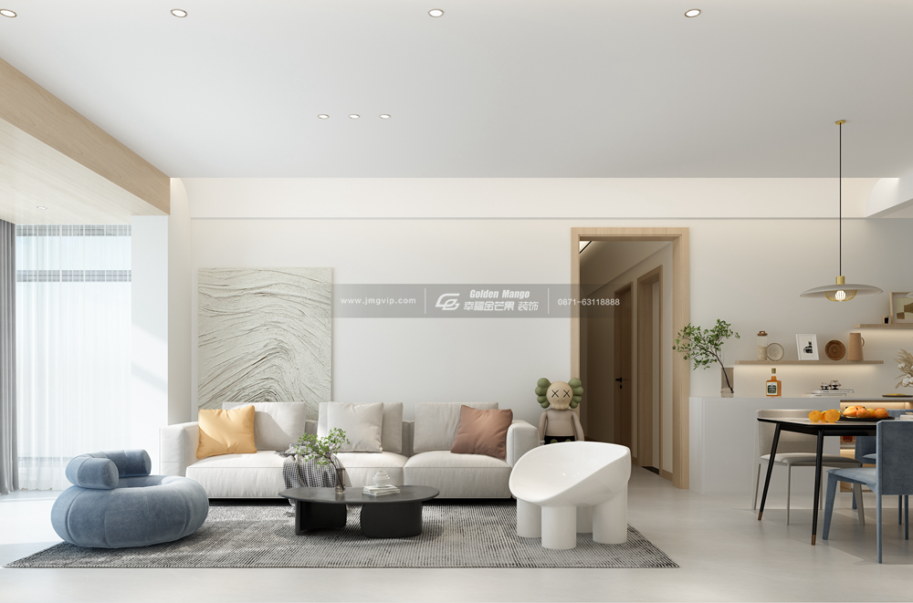 在生存的哲學中,空間是能放置精神、接納自由的歸宿,打破、重組、創造,萬千美好事物由此而產生。幸福金芒果裝飾,以設計沉浸時代感,映射未來居家生活需要,又與藝術相棲,打造現代極簡風格下的寫意空間,于都市里、于喧鬧處,鬧中取靜,造一處清凈自在的居所。