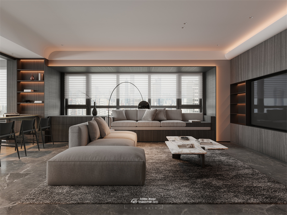 今天要給大家分享的是昆明山海原著一套現(xiàn)代暗色系風(fēng)格的裝修案例,全屋以胡桃木色為主色調(diào),整體營造出有質(zhì)感的奢華感,簡約中又不失家的溫馨。大量木飾面讓家呈現(xiàn)出一種溫暖又慵懶的感覺,搭配一些石材的點(diǎn)綴,展現(xiàn)出都市的時(shí)尚與華麗,整體設(shè)計(jì)有個(gè)性,展現(xiàn)對(duì)生活品質(zhì)的追求和高級(jí)。