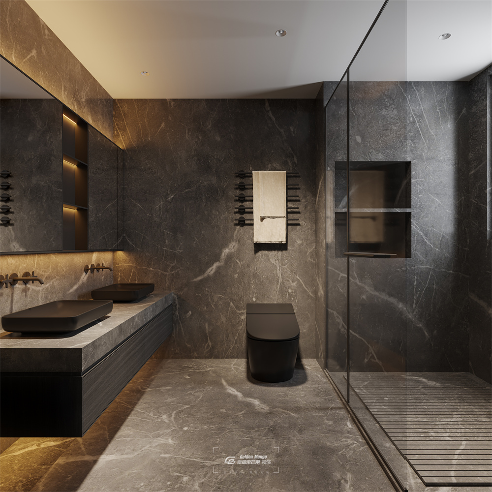 迎合整體空間溫暖棕色的格調(diào),衛(wèi)生間的設(shè)計(jì)也充滿藝術(shù)氣息,簡約溫馨高級(jí)的設(shè)計(jì),讓每天早晨開始和晚上結(jié)束的時(shí)間都變得更加愜意,黑色的雙臺(tái)盆設(shè)計(jì)經(jīng)典耐看易打掃,懸浮底部時(shí)尚之余,也讓家居打掃的任務(wù)更加輕松。