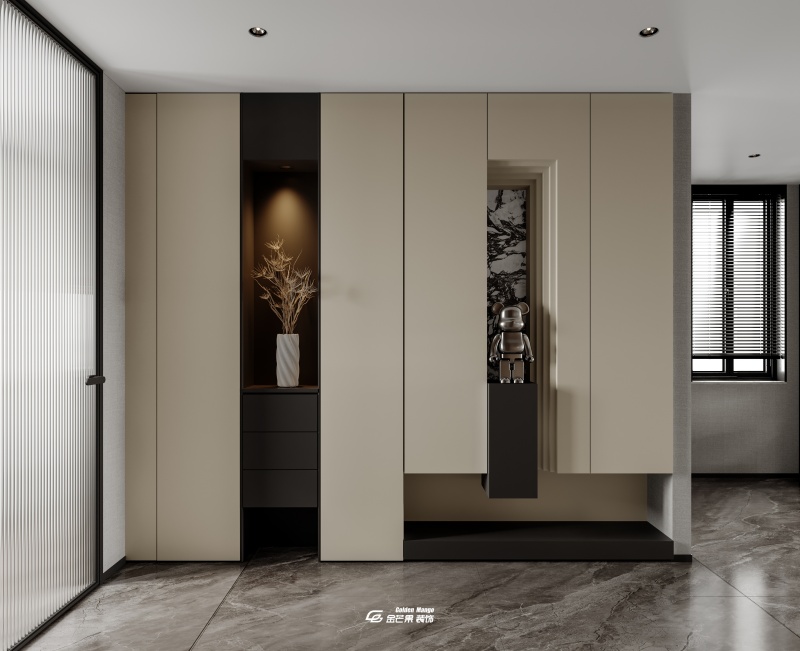 整體簡約高級,兼具收納與裝飾功能,展現出時尚雅致的居住品味 。