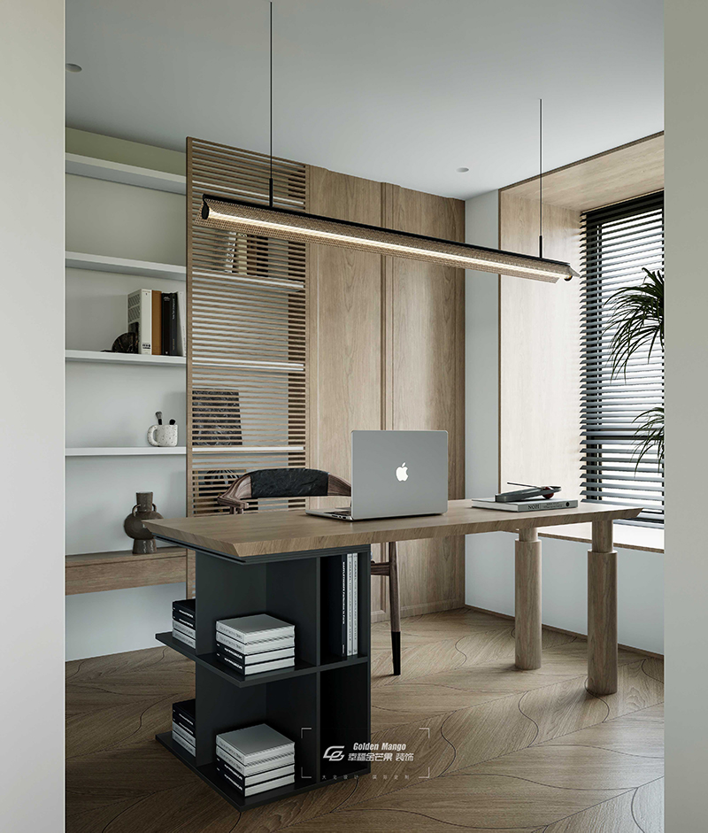 書房,是這片天地里的靜謐角落。木質的書桌與書架,沉穩而內斂,它們以古樸的姿態,承載著知識的重量。書架上擺滿了各類書籍,它們是思想的火種,在這里靜靜燃燒,等待著被點燃。當陽光透過百葉窗,灑在桌面上的筆記本上,時間仿佛在此刻凝固。