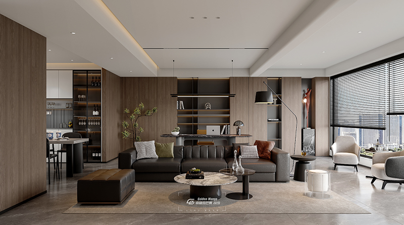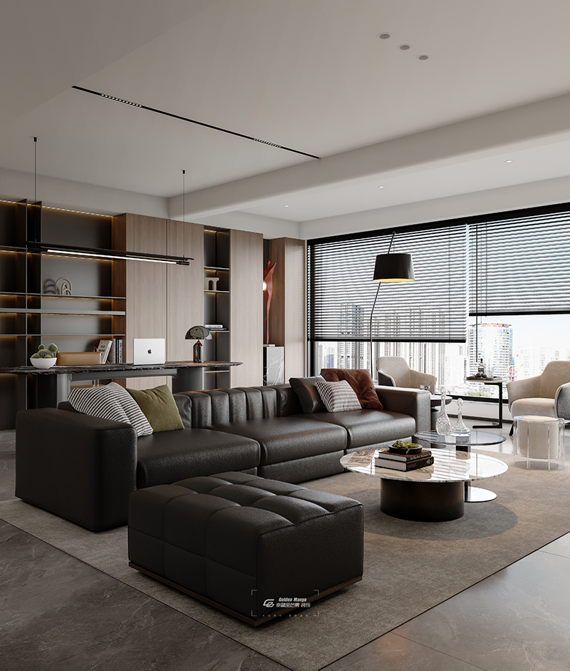 沙發(fā),現(xiàn)代而奢華,它不僅僅是一個(gè)休憩的角落,更像是一個(gè)情感的驛站。勞累一天后,窩在沙發(fā)里,或捧一本心愛的書,或與家人促膝長(zhǎng)談。它的每一寸皮質(zhì)、每一根紋理,都在訴說(shuō)著對(duì)生活品質(zhì)的執(zhí)著。而茶幾,那簡(jiǎn)約卻富有設(shè)計(jì)感的大理石臺(tái)面,盛放著生活的精致與從容。幾本書、一杯咖啡、幾束鮮花,在這里,時(shí)光仿佛變得緩慢而悠長(zhǎng),生活的節(jié)奏也隨之變得舒緩而愜意。